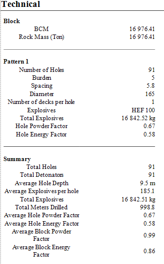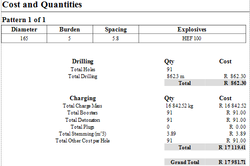 Multiple reports can be generated per blast design. The reports include drilling instruction, charging instruction, technical ,cost and quantities , just to name a few.