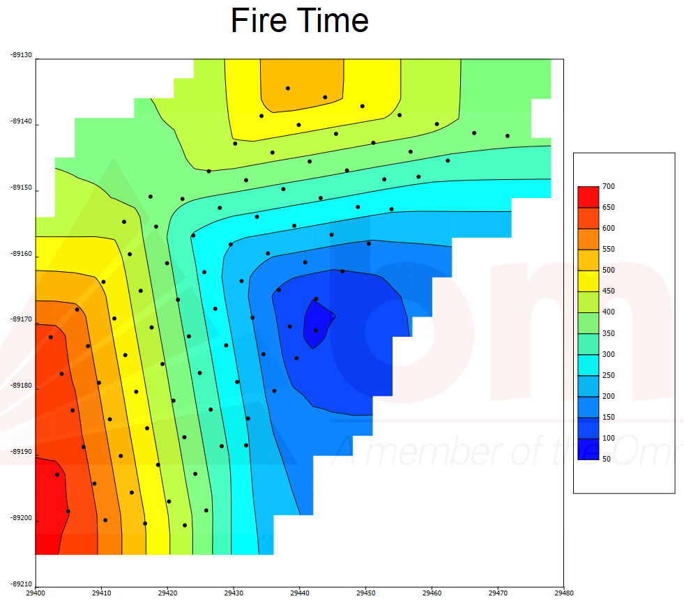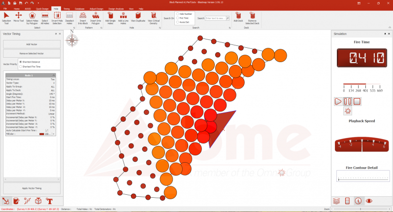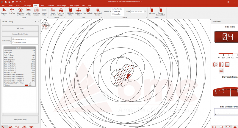Contour fire time,burden response ,effective burden response, hole depth, explosive distribution and ppv