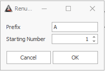 If you need to change the starting number or prefix (to identify a new row), press the Renumber Holes button again or the shortcut CTRL-R .