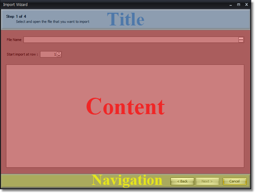 To navigate to the next / previous step use the navigation buttons at the bottom of the Import Wizard.
