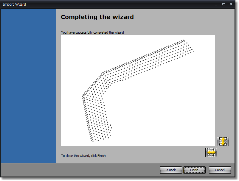 This is the final step of the import wizard. The imported data will be displayed graphically as a preview.
