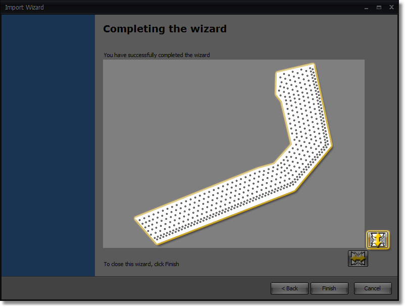 When you are satisfied with the design in the graphic preview press the Finish button and the data will be imported to the current design.