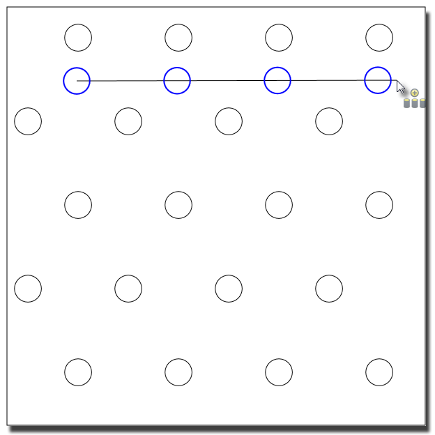 The second mouse left-click will add the line of holes to the design. Unlike the other user modes, after the second left-click the mode will be changed to the default arrow mode.