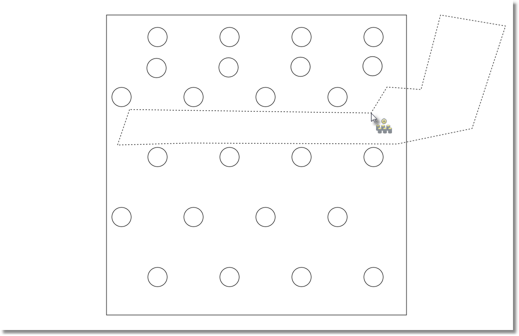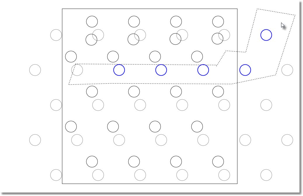 3. Use the arrow keysto position the holes in the polygon area. Holes inside the area (blue colored outline) will be add to the design and the holes outside the area (grey colored outline) will be discarded.